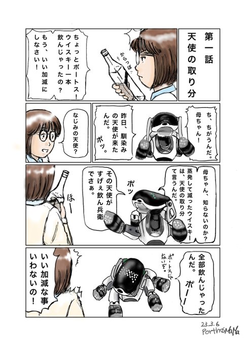 「ゆっくりとイラストレーション」 Instagramを更新しました。 instagram.com/porthosmama/ 漫画に初挑戦しました。ブログの漫画版みたいな感じで進めていこうと思っています。 porthos.blog.ss-blog.jp 第一話「天使の取り分」 #aibo #イラスト #漫画 #漫画好きと繋がりたい