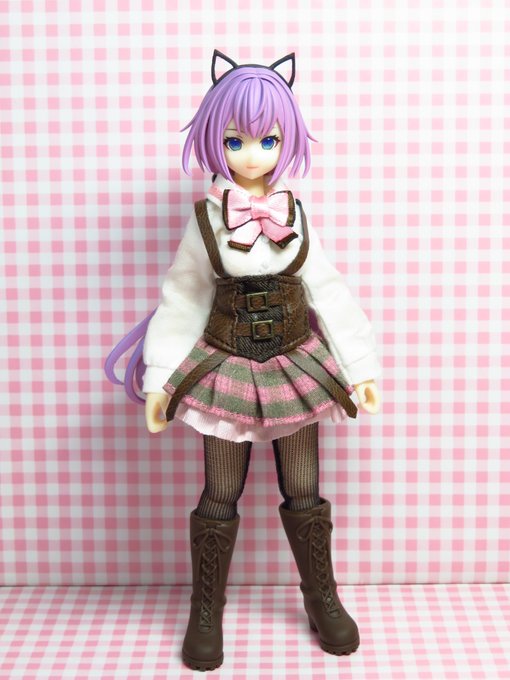 撮影会でお世話になってる #ミニチュアスタジオ からアサリ公式アイテムが出たとなれば買うしかあるまい! しかもめちゃかっこいい椅子!! 組み立ても一瞬でできたので、うちの子を座らせると…校章が隠れちゃってもったいない。他に何か……コレ? #AKG21 #アサルトリリィドール部 #カスタムリリィ