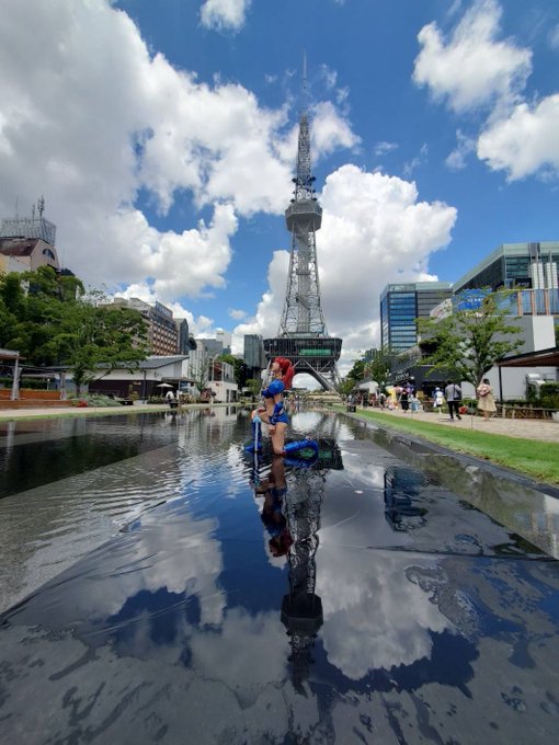 おはよ☀️今日から関東入りだよ🙌 💙幻夢戦記レダ🗡️朝霧陽子❤️ 📸:@MaxGaia3 さま #コスサミ2023 #wcs2023 #Aki_cosplay #めいどばいあいら #コスサミ #中部電力ミライタワー
