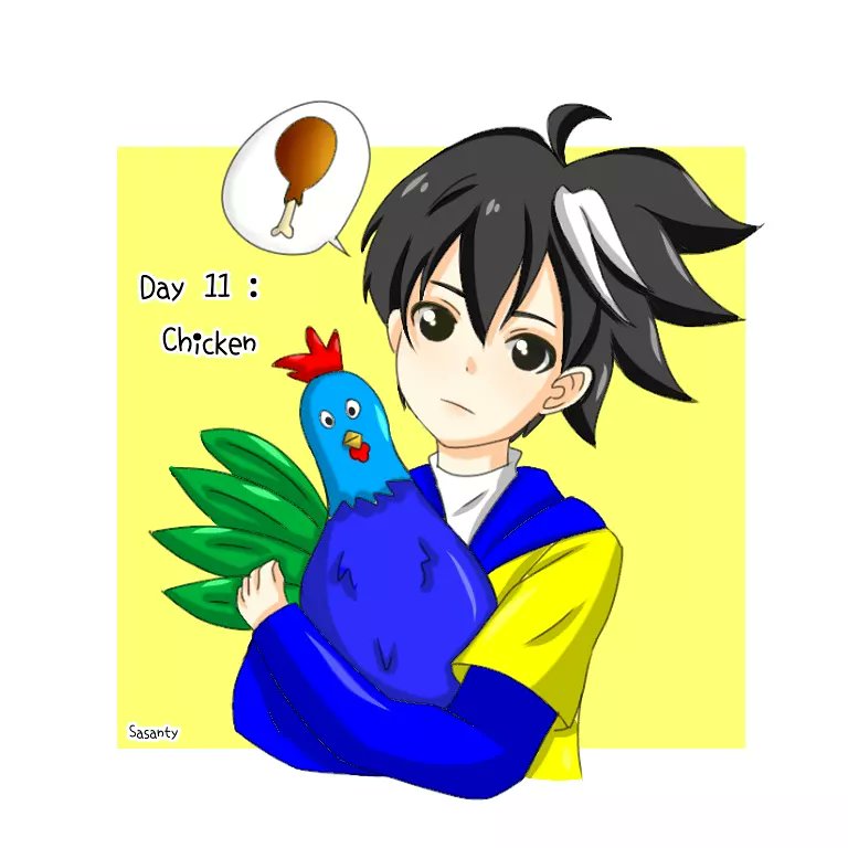 Day 11 : Chicken Amato want fried chicken when he's holding the chicken Hope you like it ❤❤ #mechatober #mechamato #mechamatofanart #amato #chicken #petok #art #inktober #ibispaintx