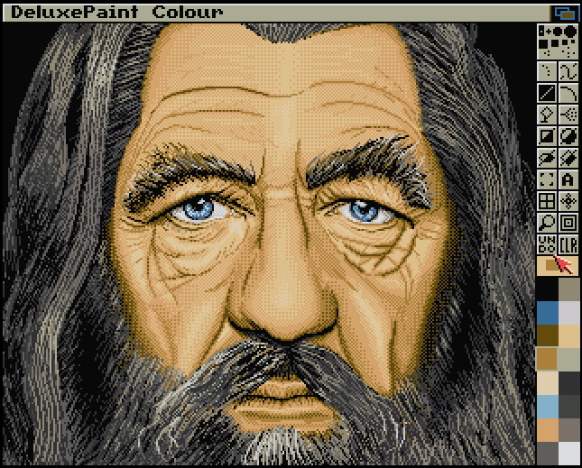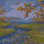 "Singh-Raha" (2009). Entry for the Little Computer People '09 #Amiga graphics compo, placed 1st 😃 32 colours, 320x256 pixels. Using patterns instead of gradients, taking advantage of the #pixelart medium. Also check out -> antialias.se