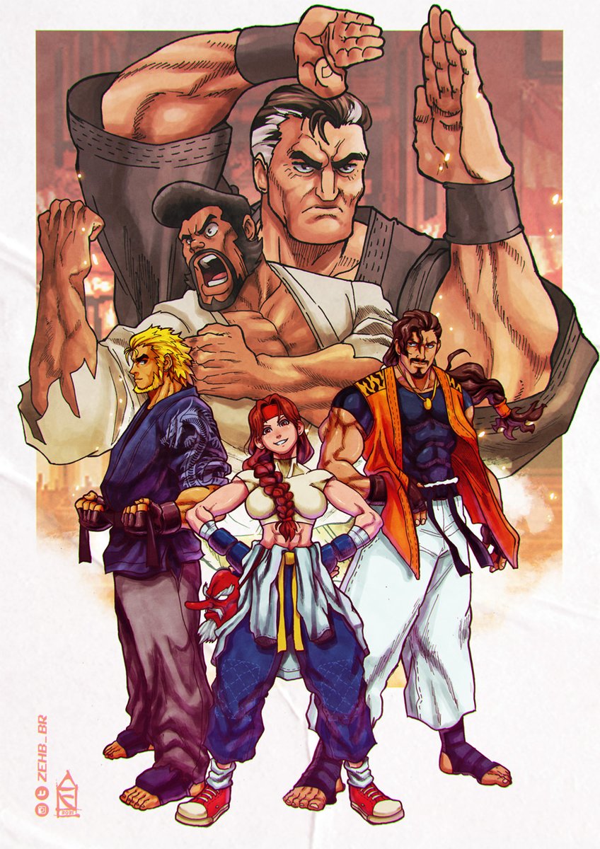 A fan-art I did featuring Ryo, Robert and King and inspired by their original models(Patrick Swayze, Steven Seagal and Grace Jones/Saskia Van Rijswijk)Happy birthday AOF! Hope to see a sequel one day! #SNKfanart #龍虎の拳30周年 #格ゲーキャラ描こうぜ #ArtOfFighting #龍虎の拳 #AOF twitter.com/SNKPofficial…