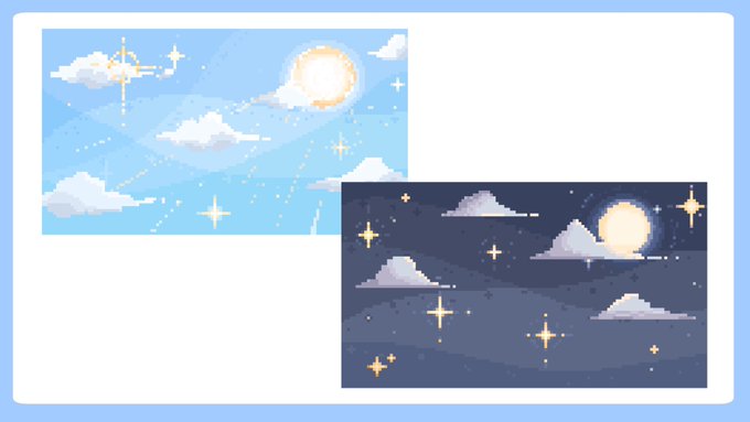 [素材追加!] ドットな朝の背景 aomaterial.com/2022/07/26/pix… ドットな夜の背景 aomaterial.com/2022/07/26/pix… ドット絵背景でいつもと雰囲気の違う配信を! #Vtuber素材 #AOmaterial #フリー素材 #ドット絵 #pixelart