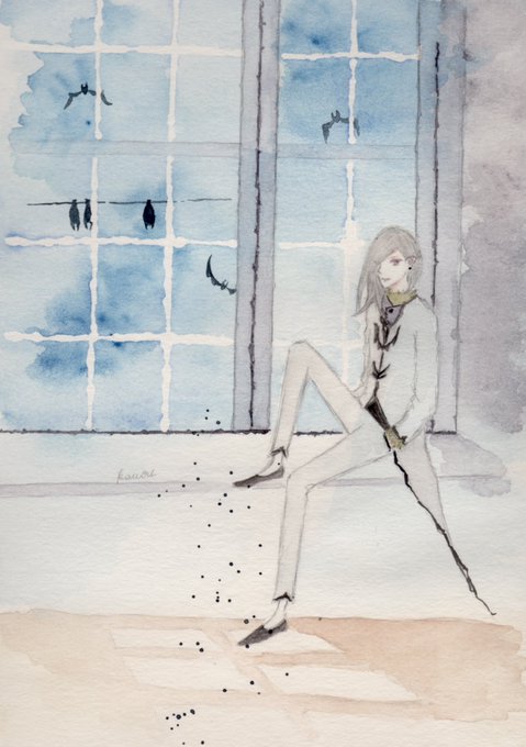 #AQUART2023 story.2 お菓子がほしいの?もっと近くにどうぞ お屋敷には 不思議な空気をまとった美しいひとがいました。 #イラスト #水彩 #創作 twitter.com/47u88/status/1…
