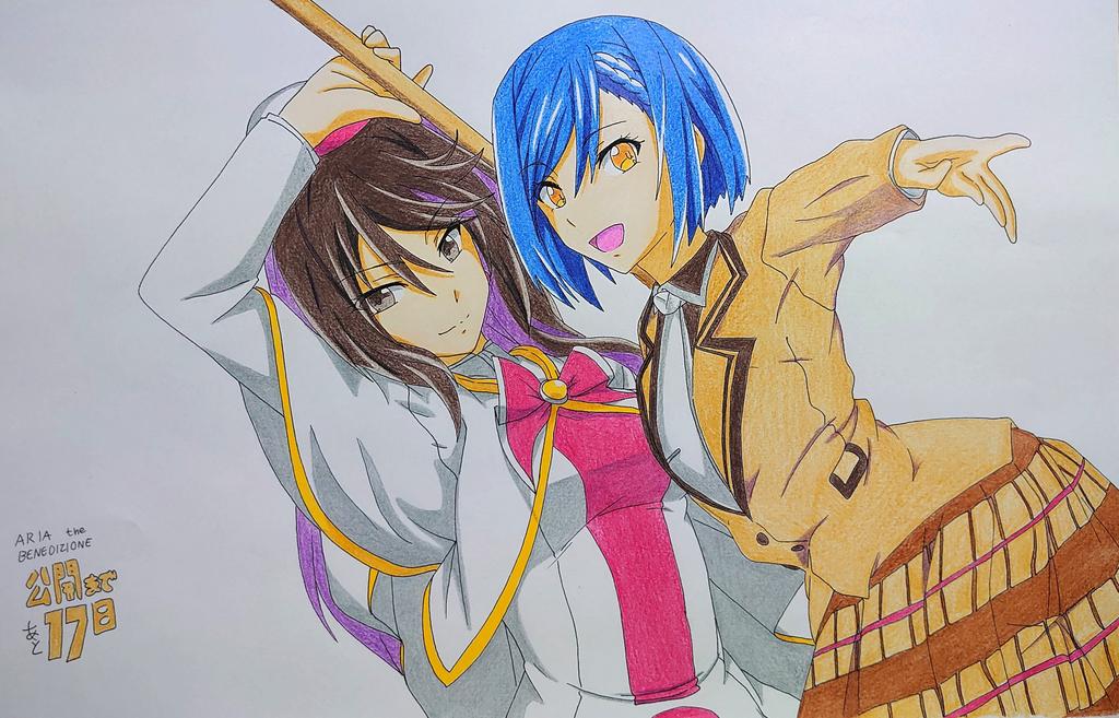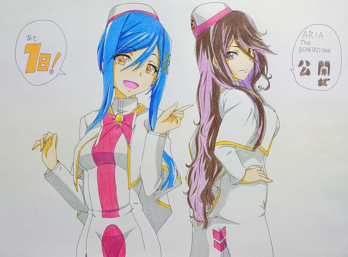 #ARIAカンパニー #イラスト #アニメ #ARIA_The_BENEDIZIONE #絵描きさんと繋がりたい ARIATheBENEDIZIONEカウントダウンイラストでお気に入りの\晃と学生時代藍華/