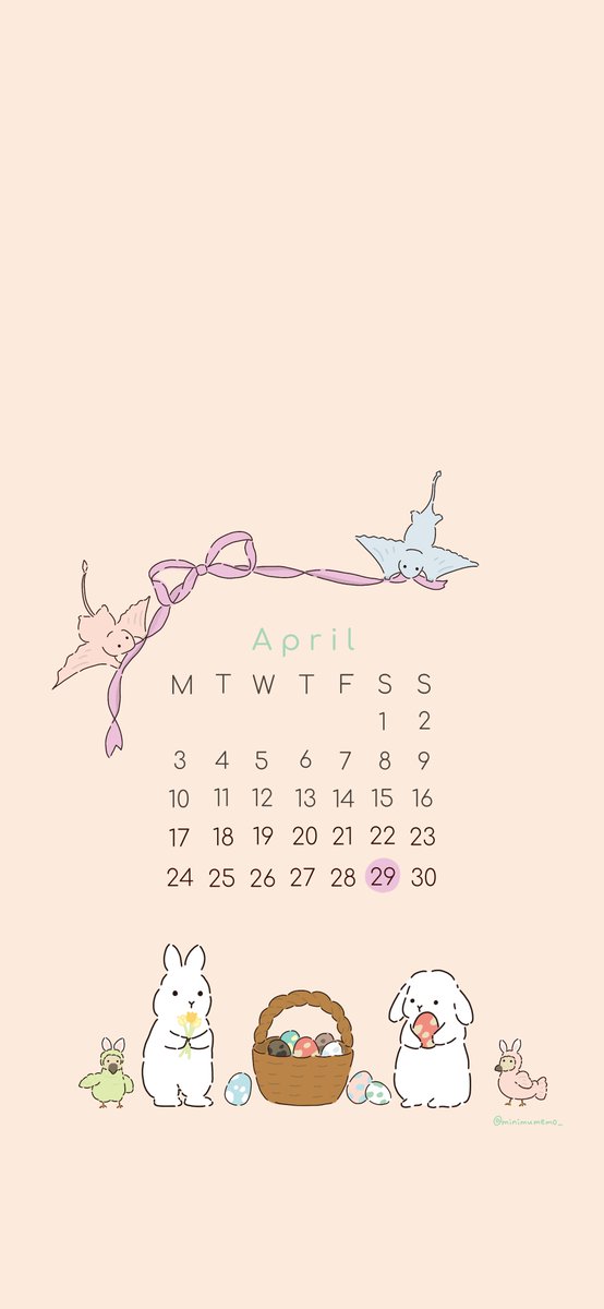 4月のカレンダーです💐❤︎ ARKイースターのイメージ🐣 新年度、マイペースに行きましょう〜 #壁紙 #イラスト #wallpaper #illustration #ARKSurvivalEvolved