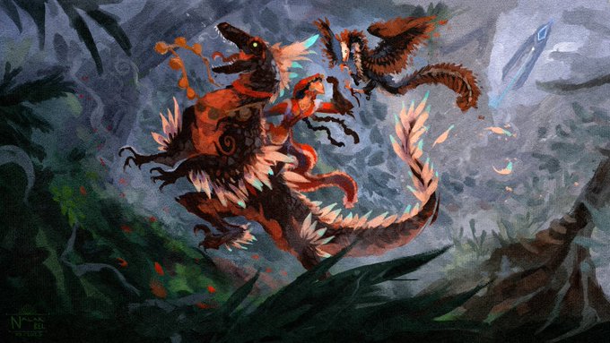 Raptor ride ! 🌿 It's been a long time since I last drew Meralbayr, so have some ARK art :D #ARKSurvivalEvolved #ARK #survivetheark #illustration #art #commissionopen #digitalart #painting #fantasyart #characterart #oc #originalcharacter #playark