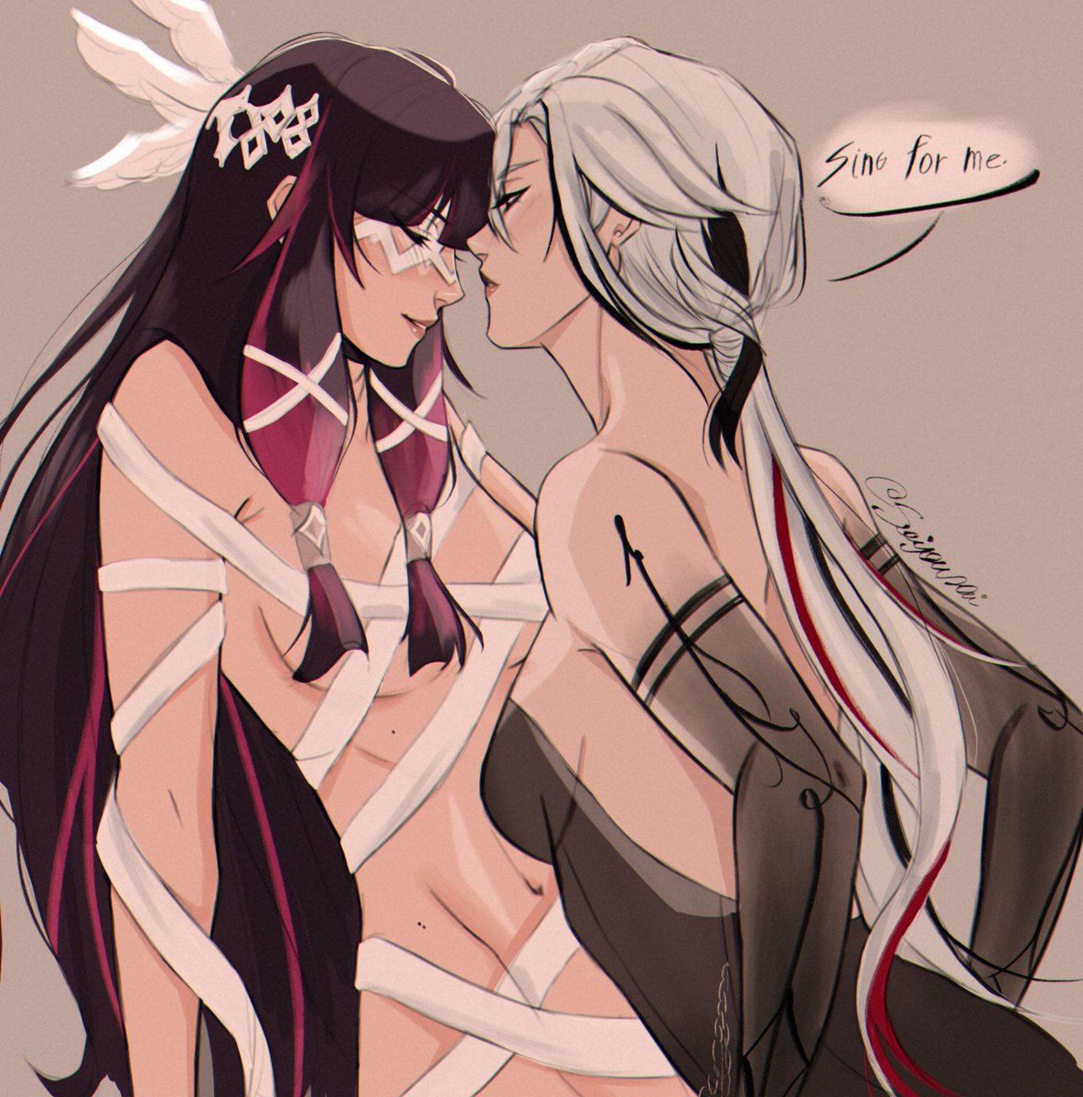 "sometimes i wonder how i taste lol." "i can help with that!" #arlebina #arlecchino #columbina
