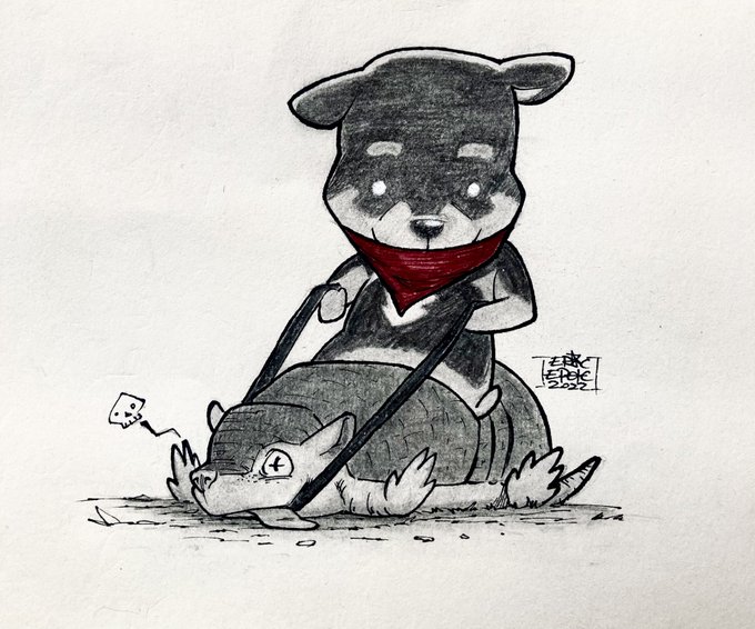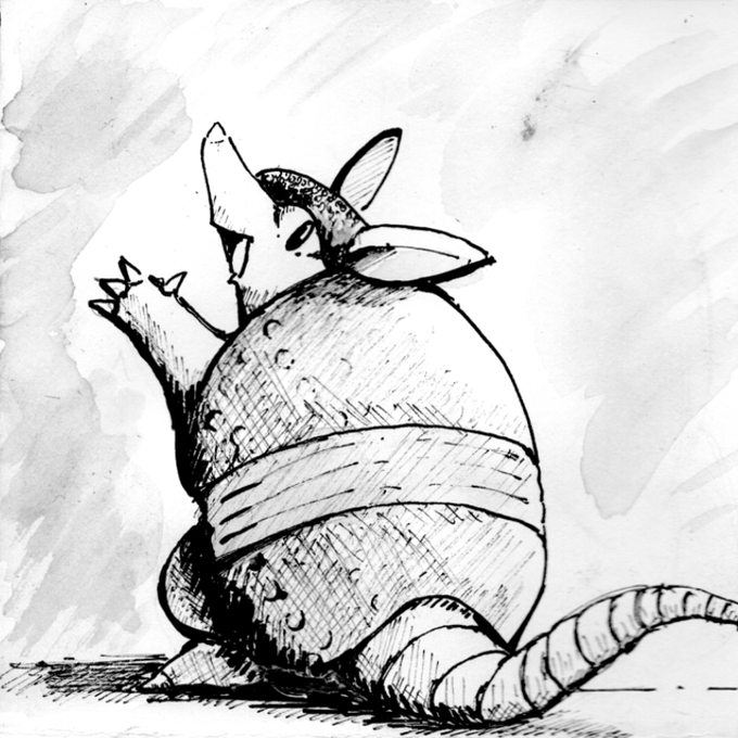 Even though I'm extremely behind on Inktober, I must get to the other side...unlike Roadkill from Rango. The prompt was "armadillo". #inktober #inktober2022 #armadillo #rango