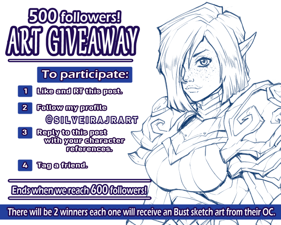 ✨500 Followers #ARTGiveaway!✨ Thank you so much for support! To participate, follow the steps described in the image. ✨There will be 2 Winners ✨Each one will receive an Bust Sketch Art ✨Ends when we reach 600 followers Good luck! #Rafle #artwork #fantasyart #oc