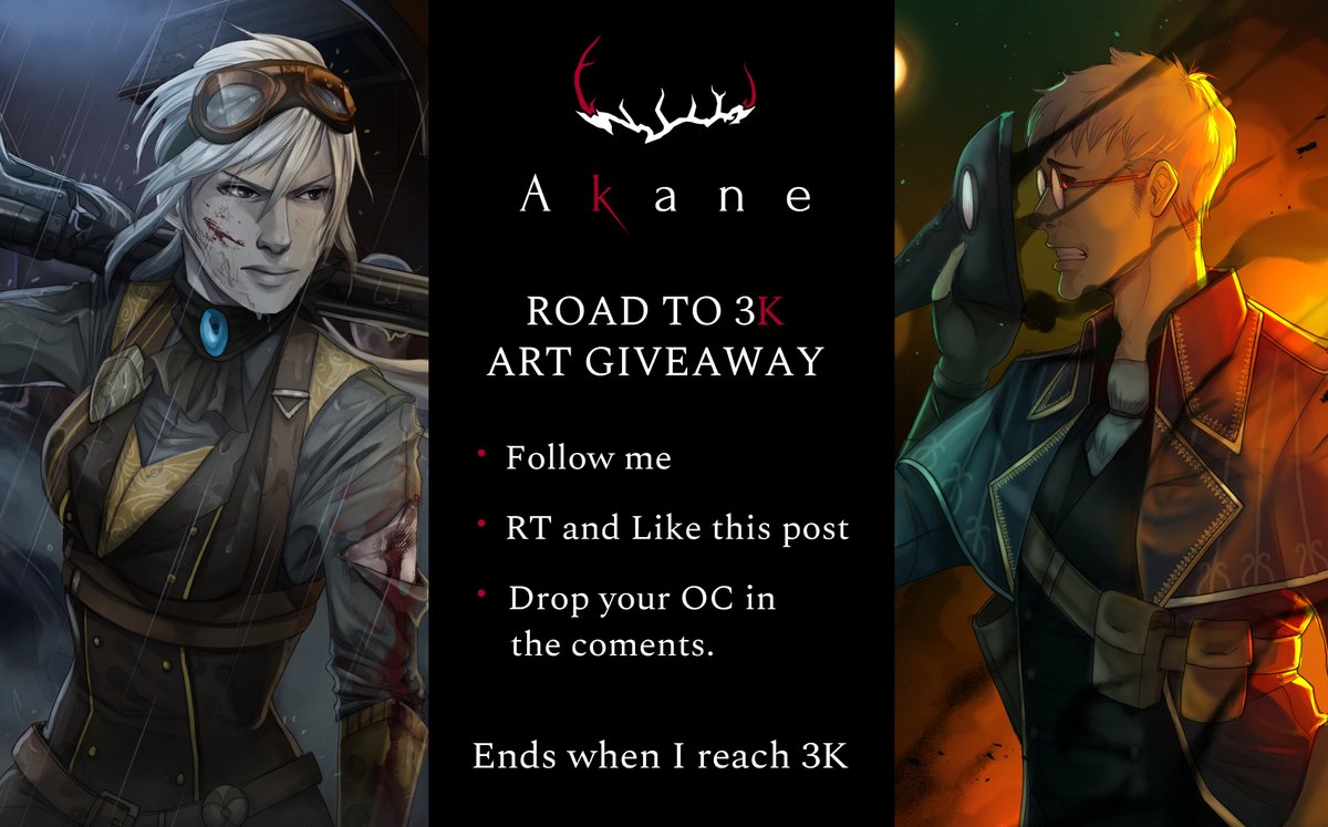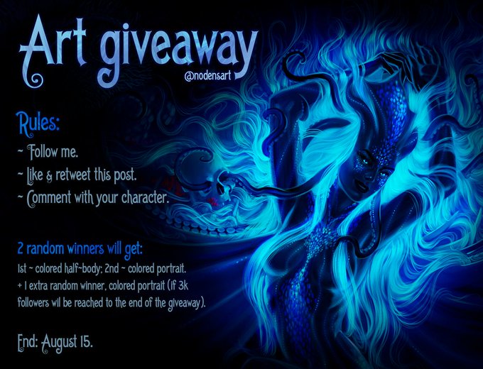 ✨🌿ROAD TO 3K ART GIVEAWAY🌿✨ Win a halfbody color commission like the ones on the examples ✨RULES 🔴 Follow me 🔴 Like+RT this post 🔴 Comment with your OC or fandom character ✨The winner will be anounced when i reach 3K! Good luck everyone! ❤️ #artgiveaway