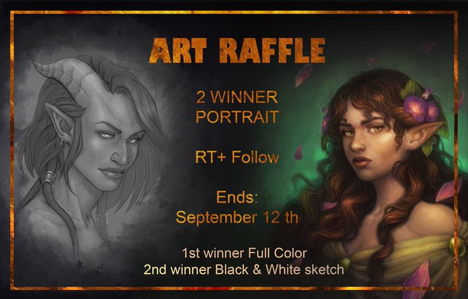 ✨ART RAFFLE ✨ Thanks for all your support 🥰 PRIZE: Portrait 2 Winners To participate: ⭐RT + Follow ⭐(Optional) reply with characters ref I'll DM the winner (Please have them open) Ends: September 12th GOOD LUCK🤞 #Giveaway #Artraffle #Artgiveaway #portrait