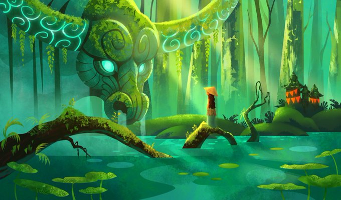 Recently did some minor adjustments to an older project "Kebo" Sinta is the daughter of a humble buffalo herder on the tiny island of Kebo in 11th c. Nusantara. When she discovers an ancient keris, she mistakenly awakens the buffalo king, Bromin. #ArtistOfIndonesia #ArtIdn
