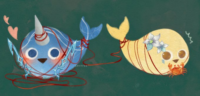 Day 1: soulmates Sacabambaglia seems very excited to be connected to sacabambalumi (who seems to be more excited with her crab) #タル蛍 #ChilumiWeek2023 #sacabambaspis #childe #lumine #artmoots #artidn #ArtistOnTwitter #chilumi