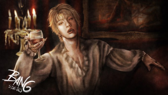 As you exit the library, someone greets you from the sofa. “How about a nightcap before bed?” asked Seokjin. @BTS_twt as Vampires for Halloween 2022 #JIN #TheAstronaut #진 #btsfanart #artmy #DELs_BST_Vampires
