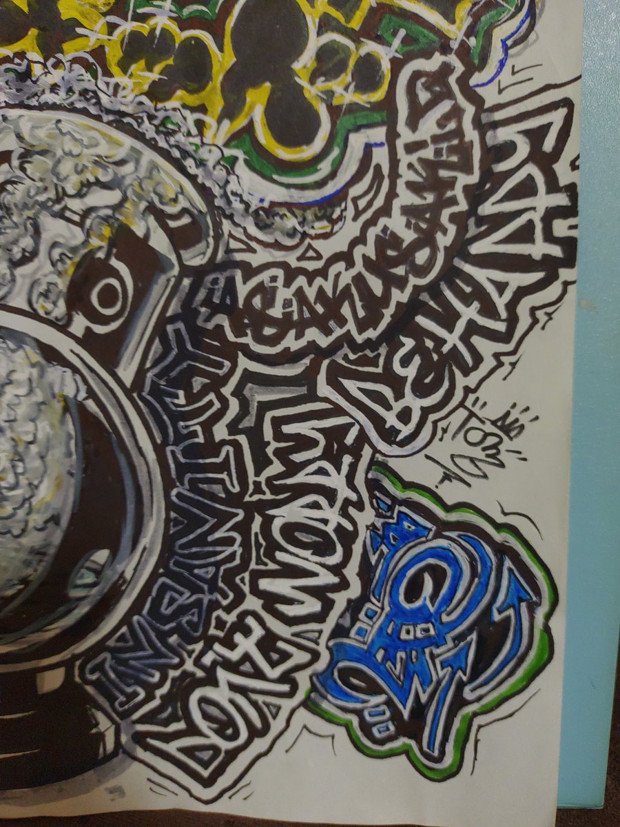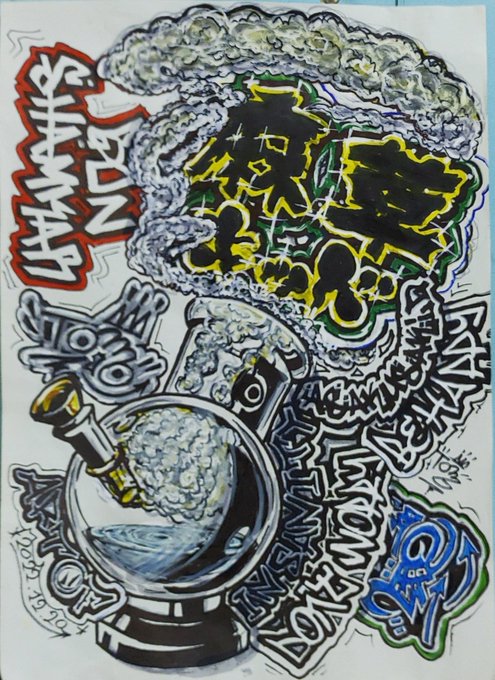 煙イジって、文字追加して… もーええわ!キリがねーわ! この絵を描いててパーカーにプリントする絵のイメージも出来た。 #イラスト #イラスト好きさんと繋がりたい #絵を色んな人に見て貰いたい #サンタさんイイネください #麻草キッド #ARTOFINSANITY