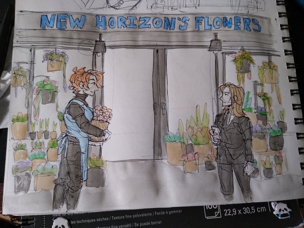 Horizon and Ash Flower Shop AU. First meeting. #ApexLegends #ApexLegendsFanart #horizon #ash #brokengravity #ashapexlegends #horizonapexlegends #traditionalart