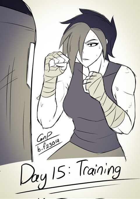Day 15: Ash trainin on a punchin bag #Paladins #Paladinsart #Palatober #Ash #Medibang #GnP_art