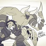 Day 5: Sneezing Talus and Ashy help him blanky :3 #Paladins #Paladinsart #Palatober #Talus #Ash #Skadrin #Medibang #GnP_art
