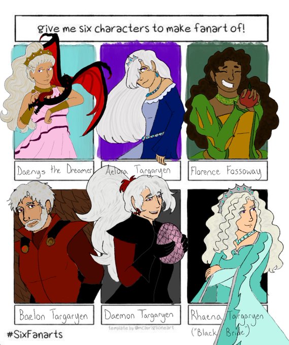 Various #SixFanarts I’ve done over time, I’m pretty fond of my AGOT daenerys and Daenys and balerion 😊 #asoiaf