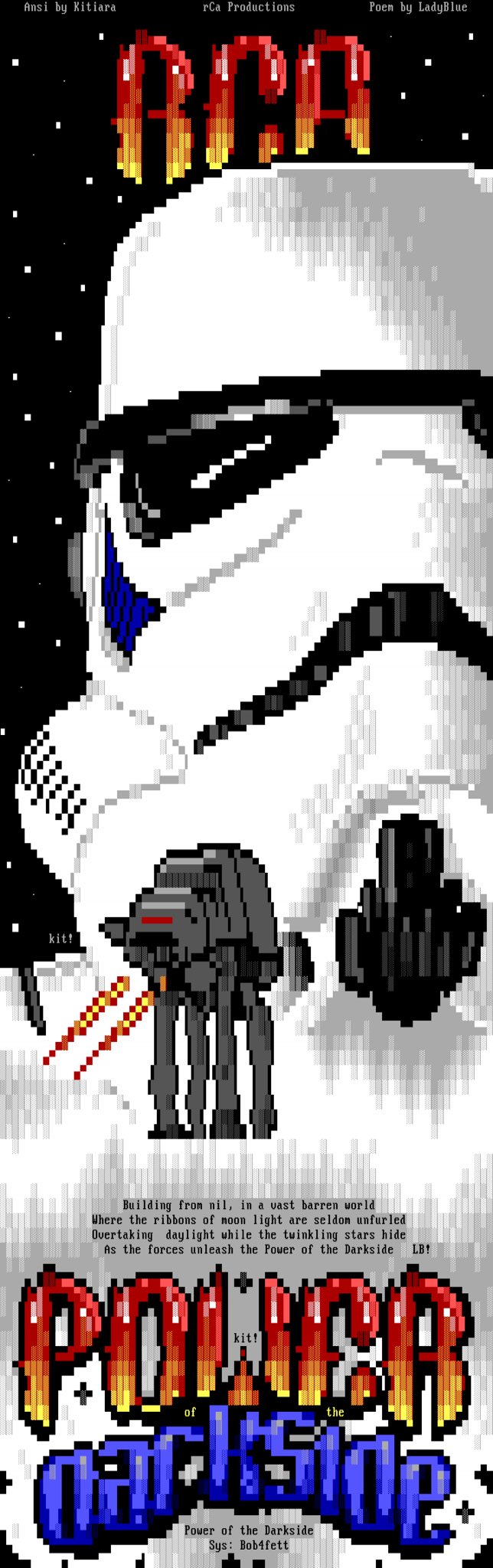THIS DAY IN #HISTORY —- 1980 - “The Empire Strikes Back” opens. #ANSI by Kitiara / RCA (1996) #ansiart #ascii #asciiart #pixelart #textmode #textart #text #art #demoscene #bbs #retrocomputing #retrographics #graffiti #graffitiart #starwars #empirestrikesback #stormtrooper #atat