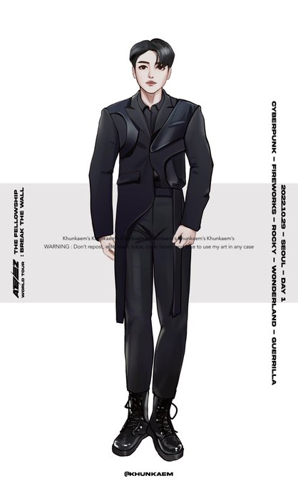 221029 THE FELLOWSHIP : BREAK THE WALL Outfit - CYBERPUNK - FIREWORKS - ROCKY - WONDERLAND - GUERRILLA - #JONGHO ยัง ยังไม่เสร็จอีก #ATEEZ #ATEEZWORLDTOUR2022 #ATEEZfanart #Khunkaem