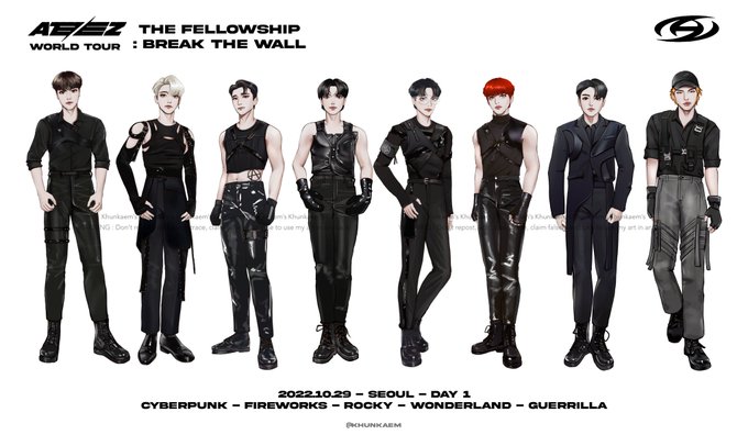 221029 THE FELLOWSHIP : BREAK THE WALL Outfit - CYBERPUNK - FIREWORKS - ROCKY - WONDERLAND - GUERRILLA - #MINGI วาดทุกอย่างจากการคาดเดา #ATEEZ #ATEEZWORLDTOUR2022 #ATEEZfanart #Khunkaem