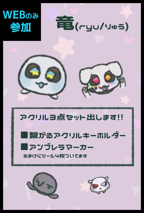 #AUプチオンリー2023_5 サークルカットとお品書きが出来ました 【竜(ryu/りゅう)】で参加します 5月3日に10セットを予定しています 万が一売り切れような奇跡がありましたら、後日(6日)に2セット追加いたします🦭🐶🐙🐹 よろしくお願いします! こちらの書き込みに問題がある場合は削除致します💦