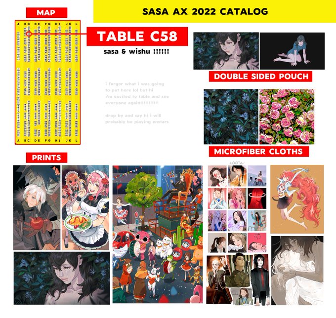 I’m a bit tardy, but here’s my catalog for #AX2022 ! I’ll be sitting at booth H28/H29 with @GrimmelsDaThird, @arthurvsdesign, and @ArcLup! If you’re a #FireEmblem or #GenshinImpact fan, please consider swinging by 🌱🐇! #AnimeExpo2022 #AX2022ArtistAlley #AX2022 #artistalley