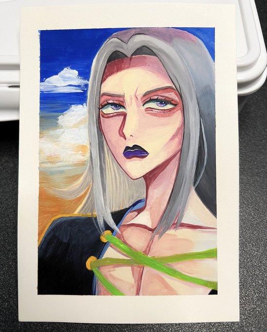 Leone Abbacchio: Gouache on 300gsm Hot Pressed Watercolor Paper Artist tape peeling in the tweet below if you want to see a satisfying video 😂 #jjba #jjbafanart #abbacchio