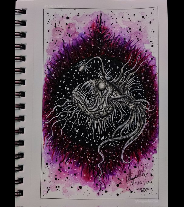 Inktober2022 - Día 4: "Abyssal" Ahora me tardé más en subir este dibujo jajaja 😬, vida de adulto y varios pendientes :( jaja en fin... aquí esta el del día 4, al rato subo el de hoy 🤭#inktober2022 #inktoberday4 #inktoberchallenge #Inktober #art #abyssal #aquarelle