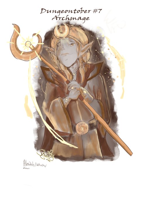 Dungeontober - Day 7: Archmage I present you Aleianh, main progtagonist of #Raalmaria He's an high-elf archmage and the Chosen the Hyshae ( Goddess of Dreams) He's also Ace/Biromantic - #AceCreativity #dungeontober #Inktober #DnDArtist