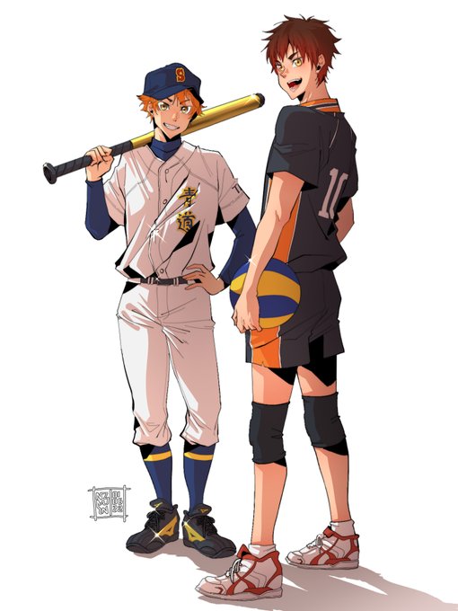 Eijun x Shoyo >/////<)9 #sawamuraeijun #hinatashoyo #daiyanoace #aceofdiamond #haikyuu #crossover #anime #fanart
