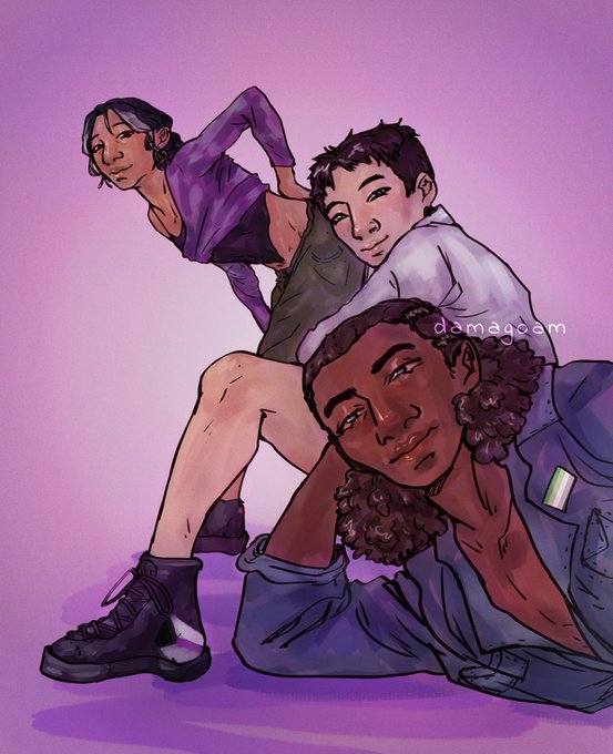É a semana Assexual e desenhei meus ocs do espectro ace (e aro), parabéns aces lindes do meu coração 💜💜😽 #originalcharacter #digitalart #AceWeek2022 #ibispaintx