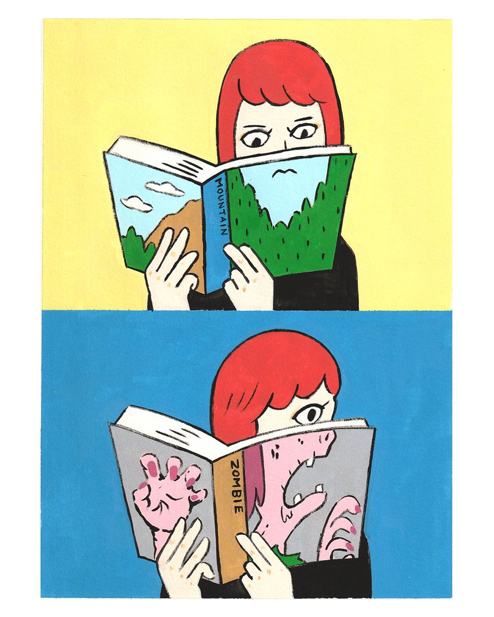 山の本とゾンビの本 Books about mountains and zombies ・ ・ ・ ・ ・ #イラスト #イラストレーター #アート #アートワーク #アクリルガッシュ #水彩画 #オリジナルイラスト #illustration #illustrator #art #artwork #acryl #watercolors #originalillustration