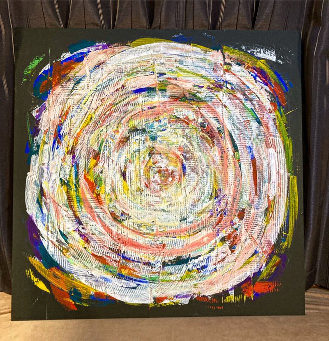 painting on a floor tile /450×450 #nomeanvisuals #art #painting #acrylicgouache #floortile #アート #ペインティング #アクリルガッシュ #フロアタイル