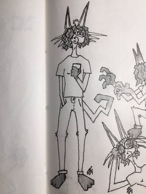 Tweaking Stereo’s design still. I feel like I’m closely aping someone’s style but I don’t know who. Maybe I’m not. I hope not. #queerartist #transfemme #nonbinary #ActuallyAutistic #furry #furryart #anthroart #drawing #sketch #stereotkatt