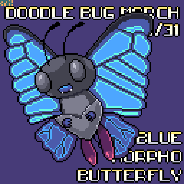 #DoodleBugMarch (30/31) #pixelart #ドット絵 #ACUAcult #bugs #butterfly #BlueMorphoButterflyfor @AquaticsGrl