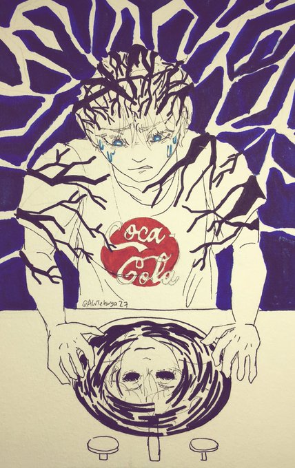 Day 17 - Intruder … Based on those scenes from The Raven King, where Adam becomes aware that his body is no longer his alone … #inktober2021 #inktober #adam #adamparrish #ravenboys #ravencycle #traditionalart #maggiestiefvater