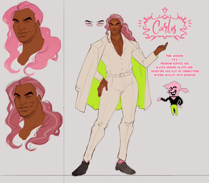 Here's a reference of my Pink Addison Gijinka. I find it a lil strange that ppl draw Spamton clearly middle aged and not the Addison's? but yeah here he is! He'll cut you a high quality deal. #DELTARUNE #Addisons