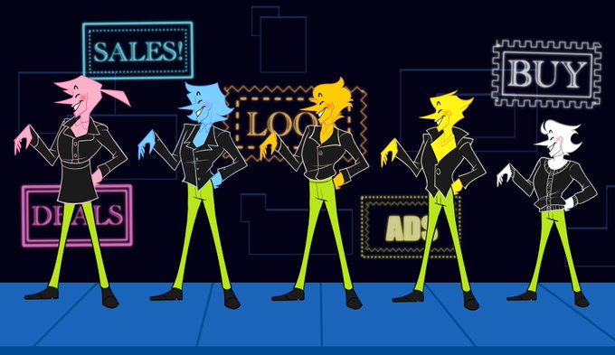 Wowza! Advertising birds that bombard you until you buy their stuff? Fun! They are best friends My personal designs for those adds #addisons #DELTARUNE