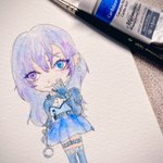 昨日のギラギラちゃんから 今日は ドメスティックでヴァイオレンス ちびver PinkなイメージだけどBlueで描きました💙 ようやく3人かぁ まだ先は長いぞー 透明水彩 #Adoart #Ado民と繋がりたい