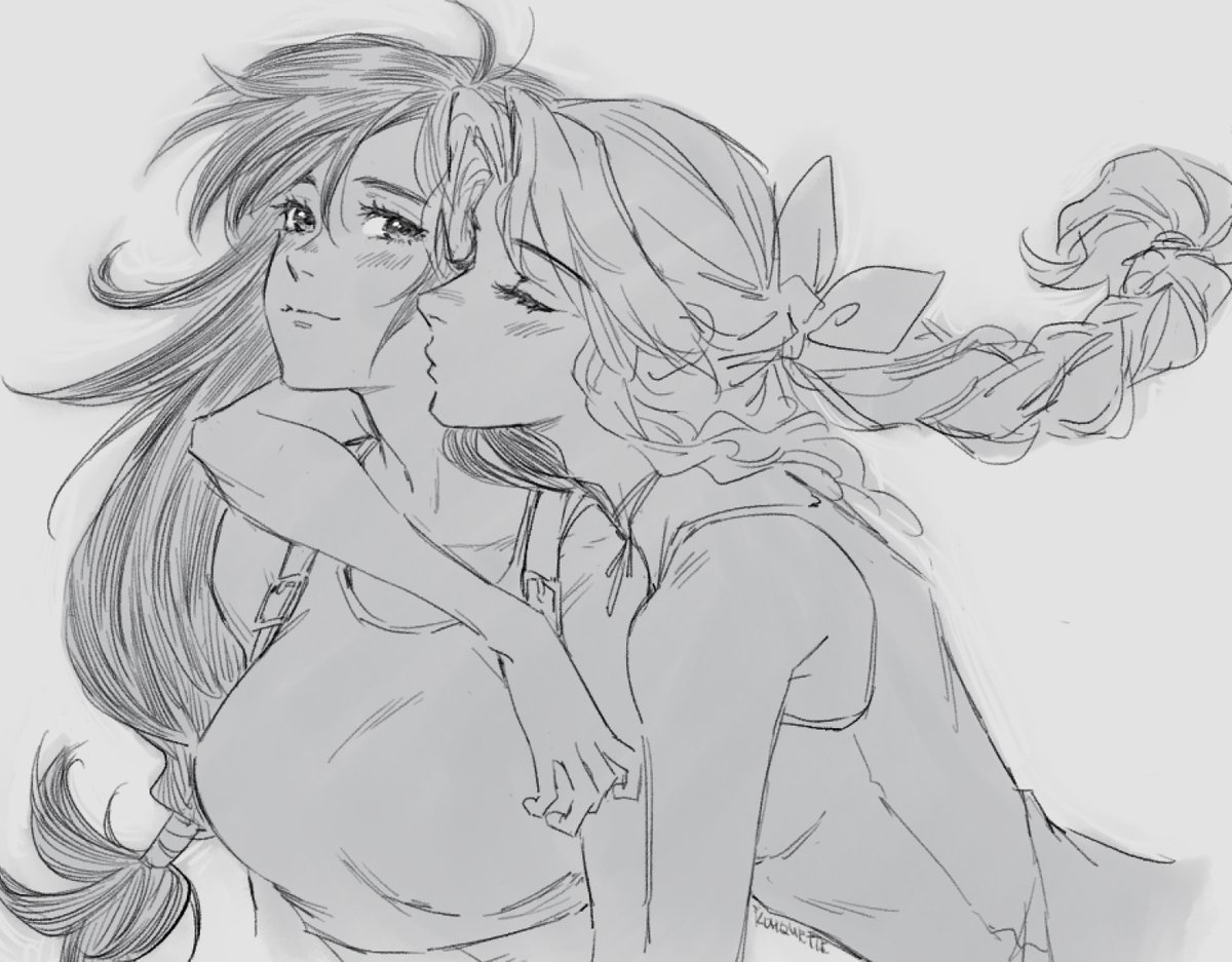 Beginnings ~ ❤️💙 #artistsontwitter (Bigger version is on my Patreon. So happy I got to open one now 🥺 patreon.com/Sreliata ) #TifaLockhart #AerithGainsborough #FFVIIRemake #FinalFantasyVIIRemake #FF7R #FFVIIR #Aerti #Tifa
