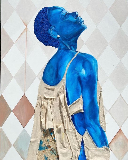 ‘Naserian’ - mixed media- 48 x 60 art by @kingkesia.art —— #blackgirlart #blackgirlmagic #blackgirlartist #art #blackart #illustration #blackartist #naturalhairart #drawing #naturalgirlart #blackwomenart #blackhairart #blackartists #afroart #sketch #original