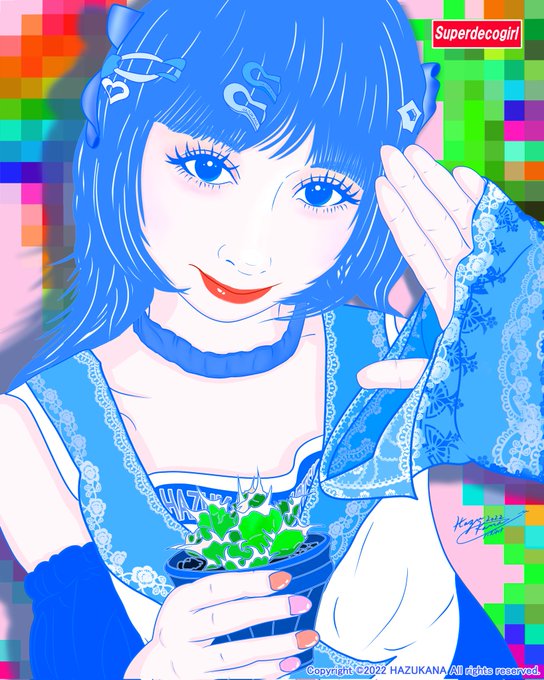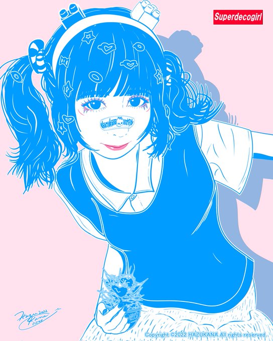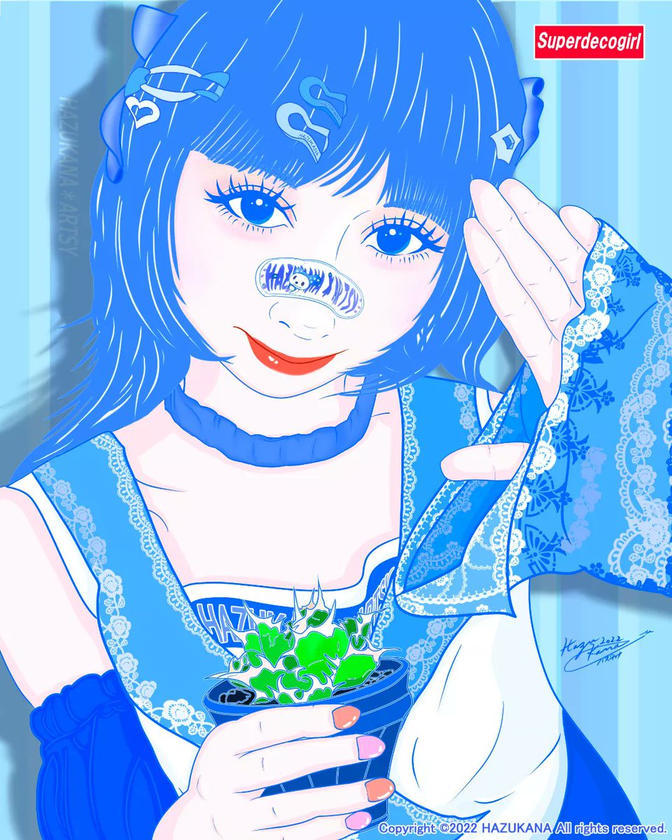 🦐“Decora Girl # 21P” ~白鯨🐳にするんよ😆🌱ピンク背景&青チタノタVer.👋 #illustration #illustrator #art #japan #anime #digitalart #girl #イラスト #絵画 #미술 #decora #decoragirl #NFT #kawaii #kawaiigirl #イラスト好きな人と繋がりたい #塊根植物 #多肉植物 #福岡 #agave #チタノタ