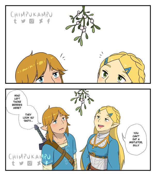 If these two are oblivious about the legend of the Silent Princess, they're prob dumb enough to know about the tradition of standing under the mistletoe🤣 #BOTW #HWAOC #AgeofCalamity #BreathoftheWild #Link #Zelda #Impa #Zelink #Fanart #DigitalArt