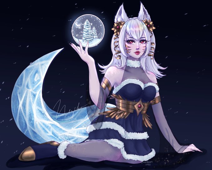 ✨snow globe ahri✨ here she is! i destroyed my wrist drawing her, but i'm so freaking proud of how she turned out! starting the new year off stronk, i say! original concept by the super talented @/jubalina_art #leagueoflegends #artoflegends #ahri #ahrifanart #lolfanart