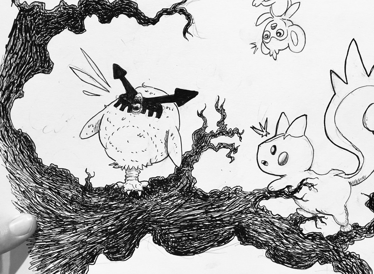 Inktober day 7 Exausted Drew a hoot hoot yawning (or screaming depending on how you decide to view this) and a pachirisu and aipom reacting. #pokemon #inktober #hoothoot #aipom #pachirisu #inktober2018 #yawn #exhausted