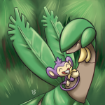 This is the last day of Inktober, and we have come to the last prompt: "Ripe", featuring a Tropius sharing one of its ripe bananas with an Aipom. #Inktober #inktoberday31 #Inktober2019day31ripe #inktober2019 #Pokemon #pokemonfanart #aipom #tropius
