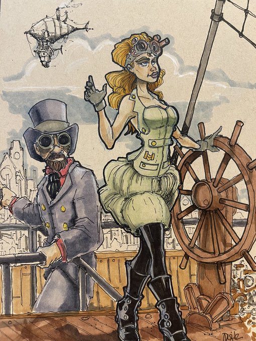A mix of #digital and #traditional #steampunk characters and #airship for an #indiegame commission . . . . . #art #illustration #doodlebags #doodle #draw #drawing #nashville #sketching #goggles #steam #steampunkgirl #steampunkgoggles #characterdesign #steampunkeagle